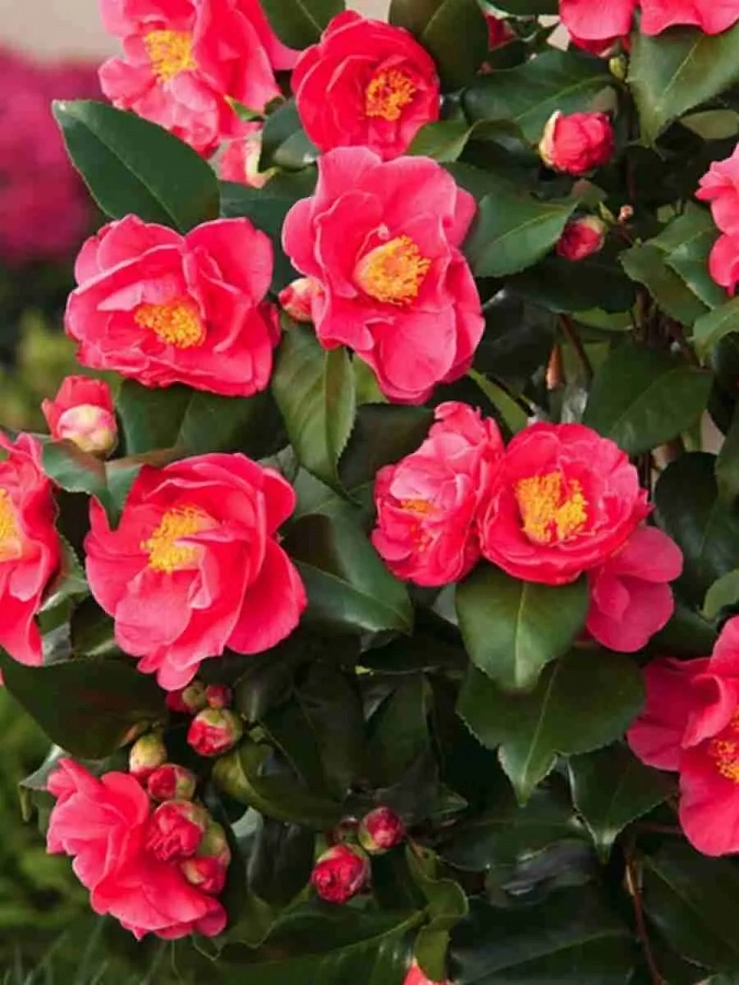 Камелия японская доктор кинг - это великолепное комнатное растение, которое поразит вас своей красотой и изысканностью. Ее расновато-розовые цветки с желтыми тычинками создадут уютный и утонченный акцент в вашем интерьере. Темно-зеленая листва камелии сохраняет свою красоту и в течение всего года, делая растение привлекательным в любое время сезона.