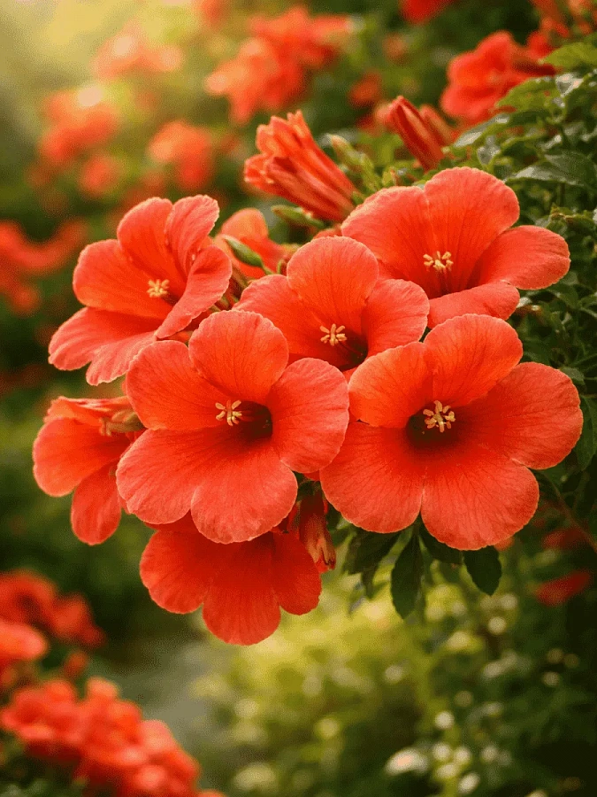 Приобретите кампсис укореняющийся Gabor и создайте у себя в саду уголок красоты и гармонии, который будет радовать вас и ваших гостей своими яркими цветами и изящной зеленью.