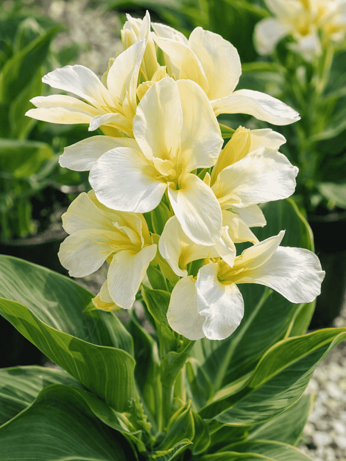 Канна ambassador - это великолепное растение с изысканными кремово-сливочными цветками, которые будут радовать ваш взгляд в июне и сентябре. Его стебли достигают высоты до 80 см, создавая элегантный вид в вашем саду. Листья канны имеют интересную форму и яркую зеленую окраску, что делает растение еще более привлекательным.