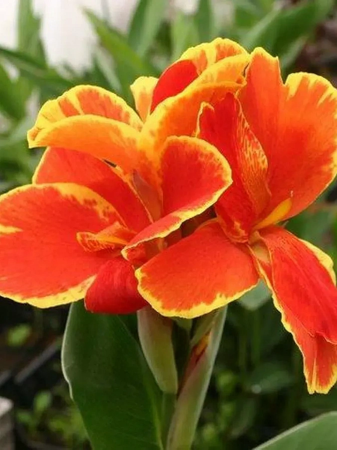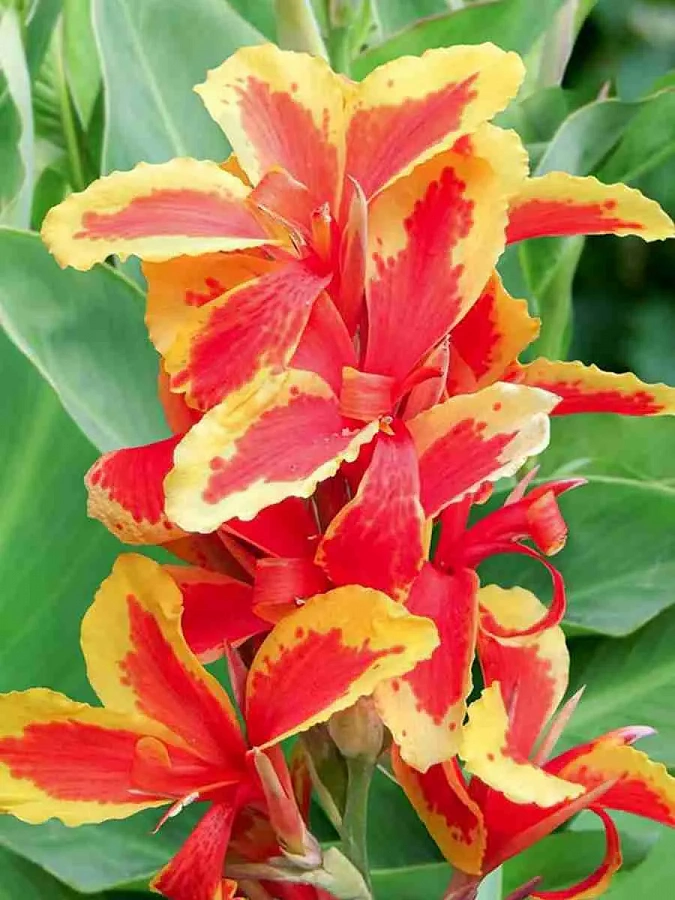 Луковицы Канны гибридной Росемонд Колес (Canna Rosemond Coles) теперь доступны для Вас. Канна представляет собой крупный цветок, достигающий до 130 сантиметров в высоту. Шикарные, крупные, миндалевидные листья уже создают атмосферу джунглей. А сами соцветия, собранные в тяжелые кисти роскошных, красно-желтых букетов, создают божественную атмосферу. Каждый цветок вырастает до 12 сантиметров. Цветку необходимо безветренное и солнечное место, хороший полив, подкормка и удаление отцветших соцветий. Растение радует своей красотой с лета до поздней осени, размножается делением луковицы на части. На зиму корень с земным комом выкапывают на хранение.