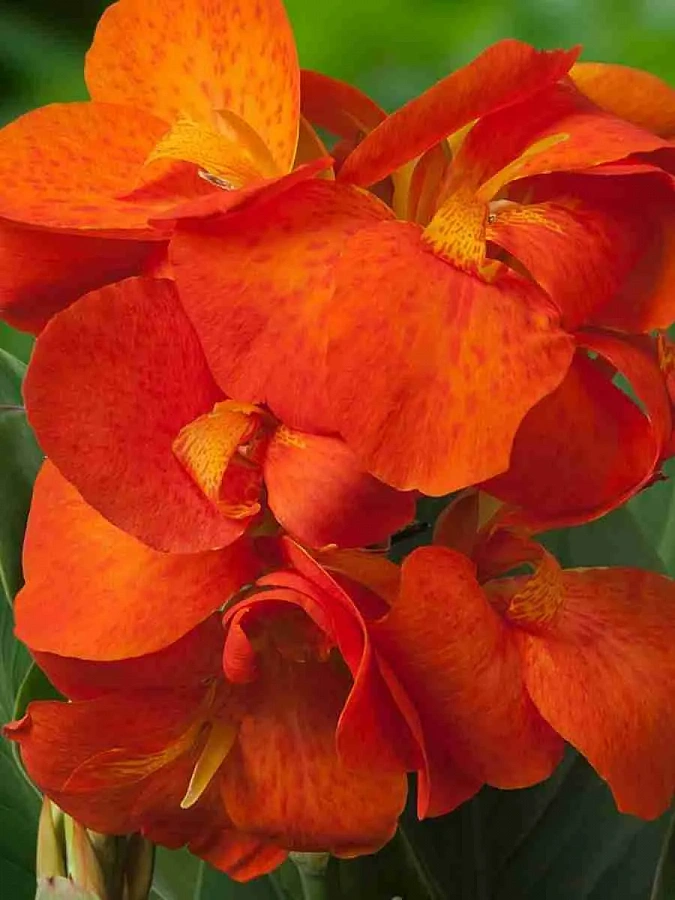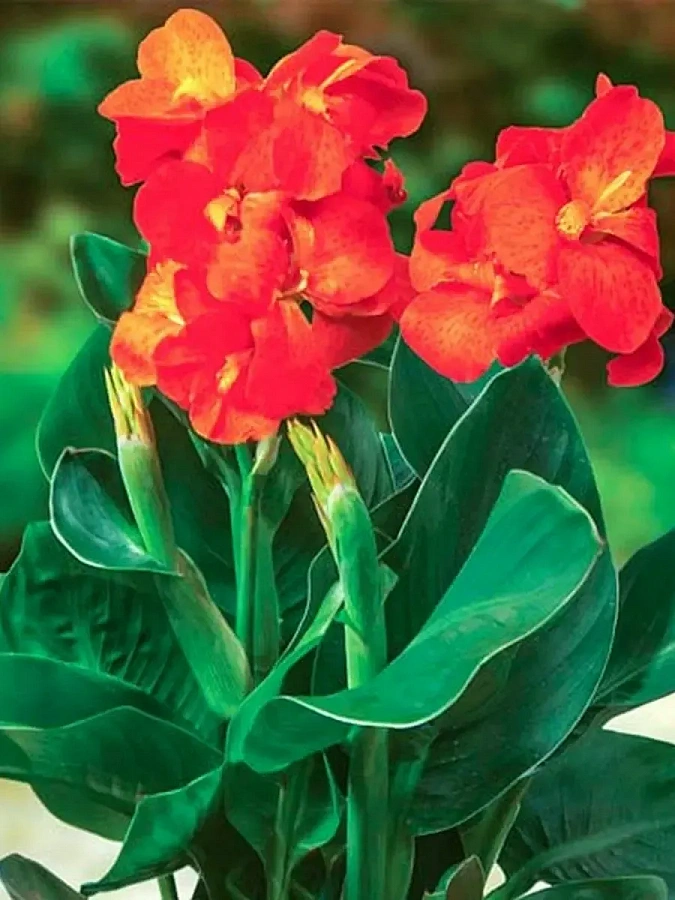Луковицы канны горшечной Хеппи Кело (Happy Cleo Canna) – превращаются в небольшие комнатные растения, высотой от 40 до 65 сантиметров. В классическом варианте цветы ярко оранжевого цвета с мелким крапом поражают своей красотой. Декоративное растение хорошо приживается и разрастается в домашних условиях. Листья слегка заостренные, овально-продолговатой формы зеленые с пурпурно-бронзовым оттенком. Цветы асимметричные, без запаха, могут быть красного, белого, розового или желтого оттенка. Канны Happy Cleo любят солнечный свет, не переносят холода и сквозняков. В летнее время хорошо переносят высаживания на террасы и цветники под открытым небом.