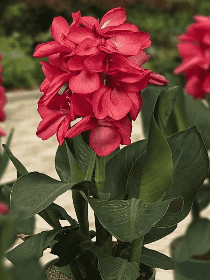 Луковицы канны горшечной Хэппи Исабел (Happy Isabel Canna) когда прорастут впечатляют красотой ярко-розовых цветов. Насыщенные малиновые цветы станут украшением домашней и производственной оранжереи. Миниатюрную канну легко выращивать в домашних условиях и в этом ее главное преимущество. Отлично чувствует себя в небольшом контейнере, летом возможна высадка на балкон. Максимальная высота декоративного растения Happy Isabel – 50 сантиметров. Период цветения припадает на летний период и продолжается в сентябре. Родина цветка – Голландия.