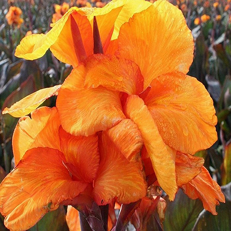 Канна коричневолистная вайоминг - это удивительное растение с ярко-оранжевыми цветками и бронзово-коричневой листвой, которое поразит ваш взгляд своей красотой. Ее травянистые стебли достигают высоты до 120 см, создавая великолепный акцент в вашем саду или огороде. Цветение начинается в мае, радуя глаз своими яркими оттенками.