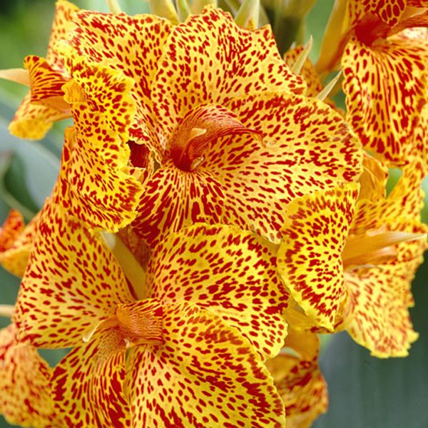 Канна зеленолистная Picasso - это великолепное растение, которое поразит вас своей красотой и изысканностью. Ее ствол прочный и прямой, достигает высоты до 70-90 см, что делает ее идеальным выбором для групповых или одиночных посадок. Листья этой канны имеют зеленую окраску в течение всего сезона, создавая яркий контраст с ярко-желтыми цветками с красным крапом, которые расцветают в июле.