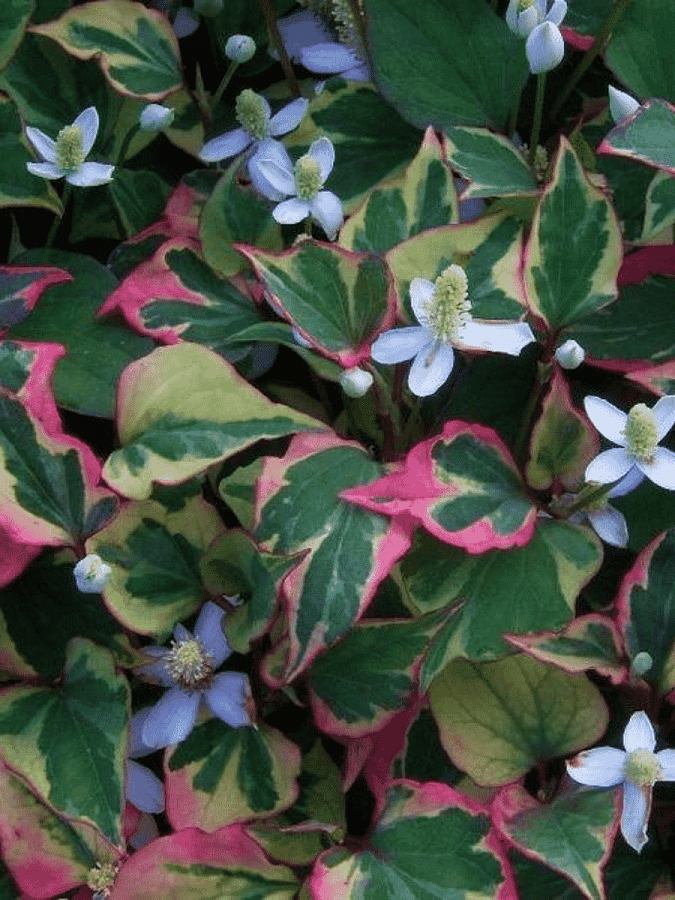 Хауттюйния сердцевидная chameleon - это уникальное растение с яркой и разноцветной листвой, которая меняет свои оттенки в зависимости от времени года. Ее стебли достигают высоты до 20 см, а цветки имеют белый оттенок, что придает растению особый шарм. Листья хауттюйнии сердцевидной chameleon имеют зеленую, белую, красную и желтую окраску, создавая неповторимый вид в саду или на клумбе.