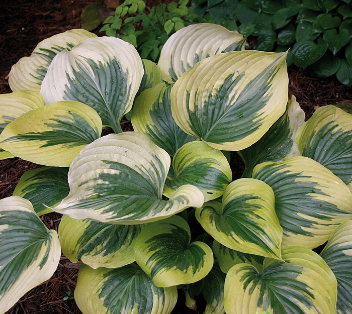 Хоста сорта Broadway (Бродвей) – красивый декоративный кустарник с утолщенными листьями. У молодых растений листья светло-зеленые с салатовыми краями, а впоследствии они становятся серо-сине-зелеными с кремовыми краями. Хоста Бродвей – крупный кустарник с интересными лавандовыми цветками, которые одинаково хорошо распускаются, как на солнце, так и в тени. Высота куста до 70 см, он хорошо разрастается. Яркий сорт часто используется в ландшафтном дизайне – в групповых или в одиночных посадках, для оформления бордюров. Её необычный вид притягивает взоры окружающих независимо от сезона.