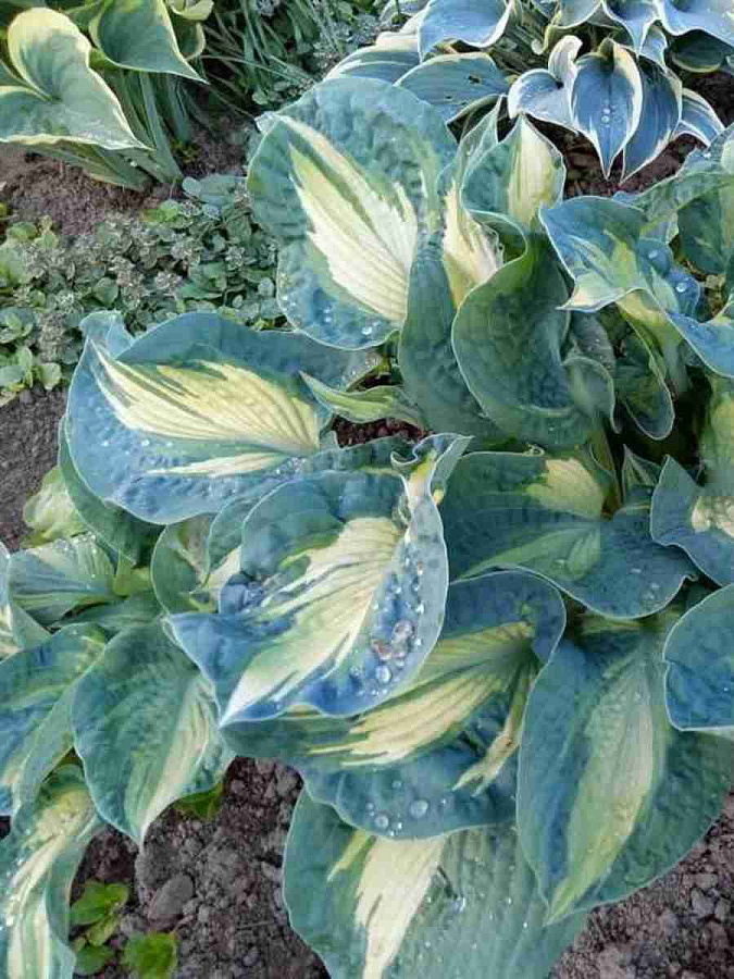 Хоста сорта Golden Meadows (Голден Меадоус) является красивым медленнорастущим кустарником. Листва на нем плотная сизо-зеленого оттенка с оригинальным голубым окаймлением. Необычно смотрится и то, что листья гофрированные.