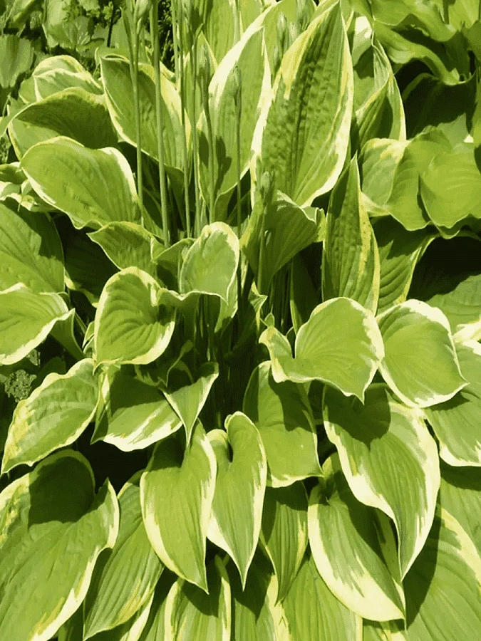Хоста гибридная тамбурин предпочитает полутень и влажные почвы, что делает ее отличным выбором для участков возле пруда. В июле и августе она радует глаз своими белыми цветками диаметром до 7 см. Листья осенью приобретают желтый оттенок, добавляя волшебства в ваш сад.