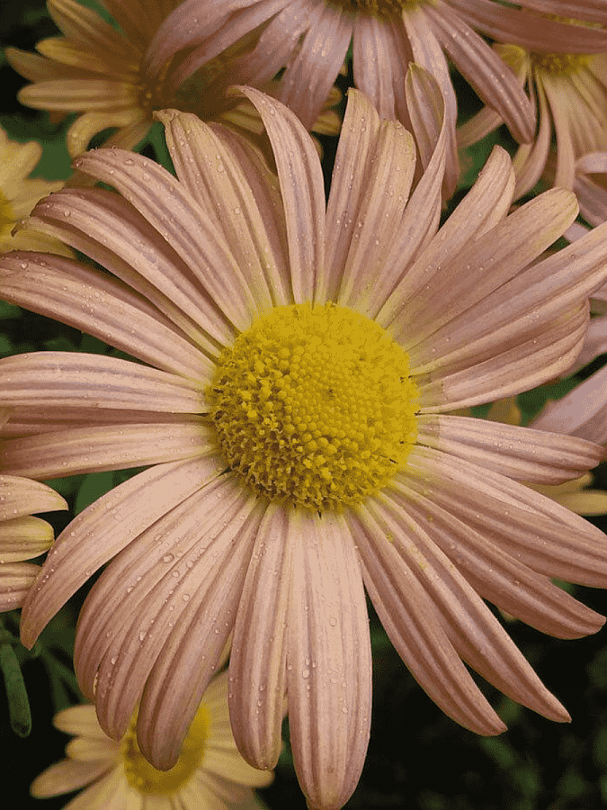 Хризантема красноватая Mary Stoker - это изысканное растение с желто-розовыми цветками и яркой желтой серединкой, которое порадует вас своим великолепием в июле и октябре. Этот сорт хризантемы отличается высотой 40-60 см и предпочитает солнечные места для посадки. Его стебель прочный, листья имеют интересную форму и размер, что делает растение уникальным акцентом в вашем саду.