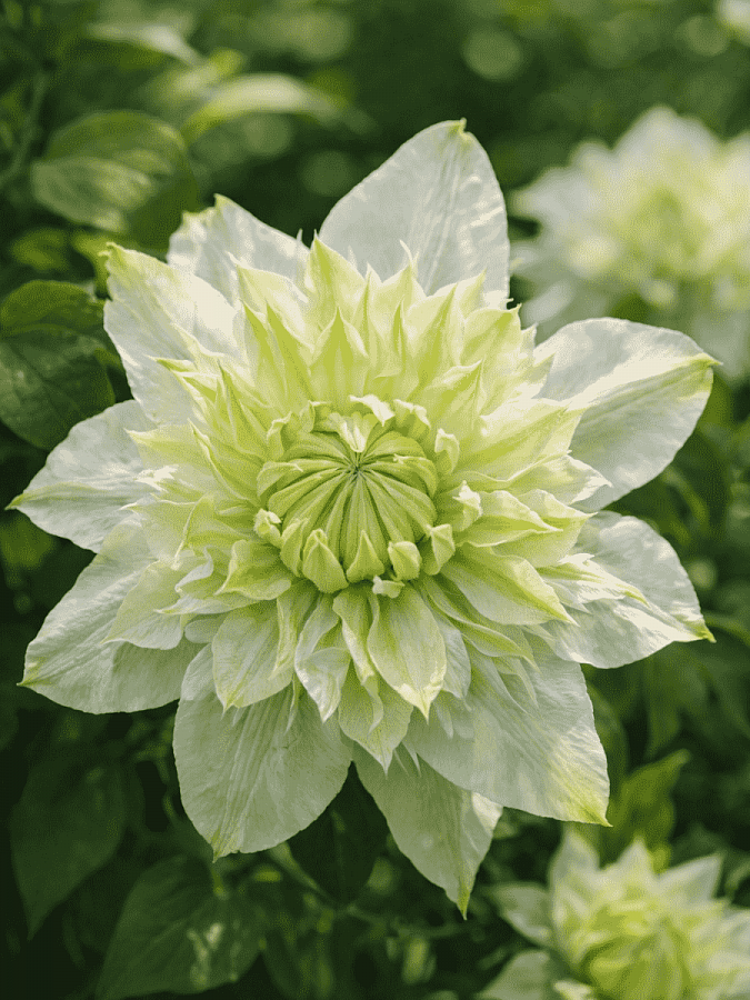 Клематис alba plena - это великолепное растение с бело-зелеными цветками, которые поражают своей красотой и изяществом. Этот сорт клематиса отличается высотой до 200 см и диаметром цветка до 8 см, что делает его идеальным выбором для групповых или одиночных посадок в саду. Листья клематиса alba plena имеют уникальную форму и ярко-зеленый оттенок, что придает растению особый шарм.