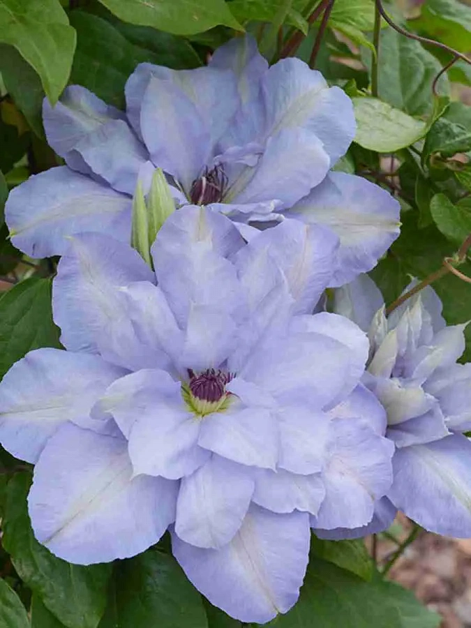 Клематис Blue Cotillion - это великолепное растение с нежными светло-голубыми цветками, которые привлекают внимание своей изысканной красотой. Этот сорт клематиса отличается высотой до 200 см, что делает его идеальным выбором для групповых или одиночных посадок в саду. Листья клематиса имеют уникальную форму и размер, что добавляет растению особый шарм.