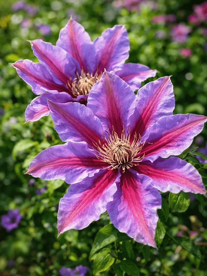 Клематис гибридный Акаиши (Akaishi) - японский высокорослый гибрид с крупными двуцветными цветками. Весной на побегах распускаются цветки диаметром 12-15 см. Лепестки светло-фиолетовой окраски, на которой ярко выделяется сиренево-пурпурная полоса. Для выращивания подходит хорошо освещенное место, которое большую часть дня находится в легком затенении. Предпочитает лёгкие богатую питательными веществами почву. Клематис гибридный Акаиши (Akaishi) следует высаживать вдоль ограждений, решеток, стен и других объектов, способных послужить опорой.