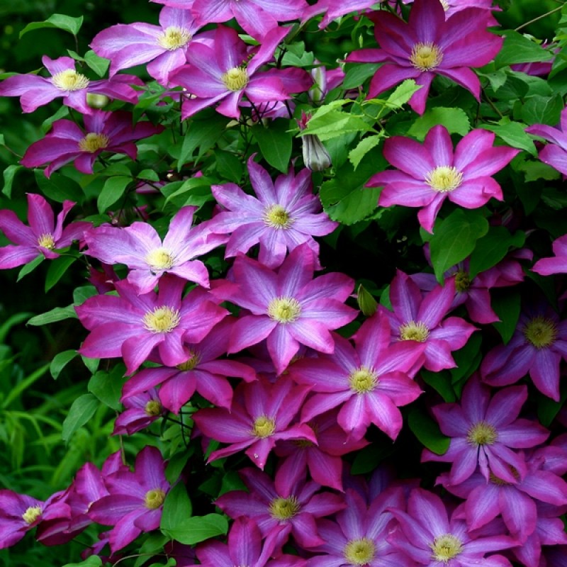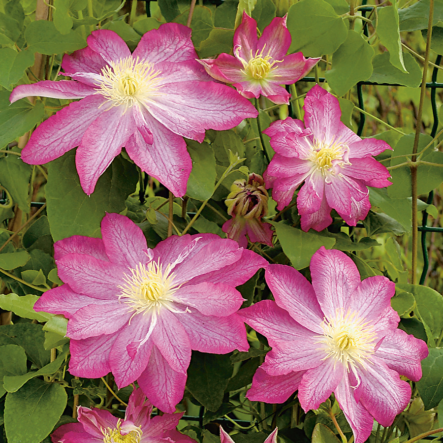 Саженцы клематиса гибридного Асао (Asao) морозостойкие, не требовательные к условиям выращивания и уходу. Для выращивания подходят места, защищенные от ветра и сквозняков, большую часть дня находящиеся в полутени. Цветёт клематис гибридный Асао (Asao) обильно, два раза в год, в мае и в августе. Цветки двухцветные ярко-розовые с белой полоской. Подходит для посадки у ограждений, беседок, решёток и других садовых опор. Может виться по натуральным опорам, например, кустарникам и стволам деревьев.