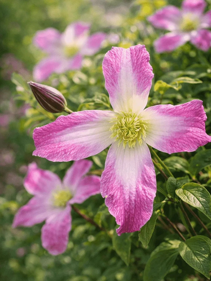 Клематис гибридный fay - это изысканное растение с нежными светло-розовыми цветками, которые привлекают внимание своей красотой и изяществом. Этот сорт клематиса отличается высотой до 150-200 см, что делает его идеальным выбором для групповых или одиночных посадок в саду или на даче. Листья клематиса имеют интересную форму и яркий зеленый цвет, что придает растению особый шарм.
