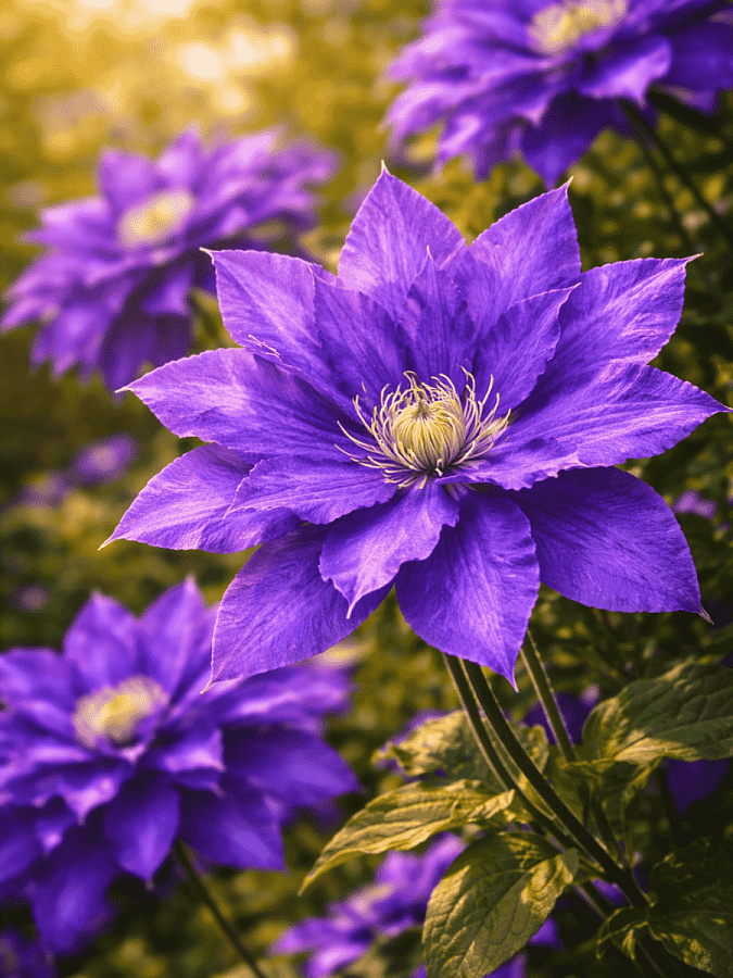 Клематис гибридный floral dance - это волшебное растение, которое привнесет неповторимую атмосферу в ваш сад. Его ствол устойчивый и прочный, способный выдерживать различные погодные условия. Растение может достигать высоты до 250 см, создавая великолепный вертикальный акцент в вашем саду. Листья клематиса гармонично сочетаются с его цветками, обладающими фиолетово-голубой окраской с пурпурной полосой.