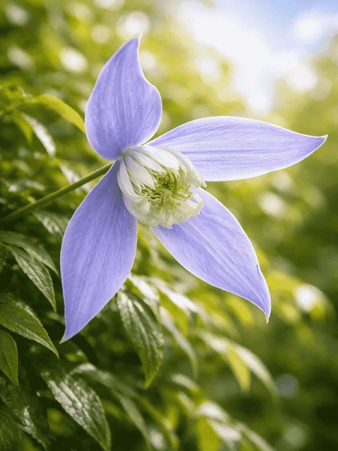 Клематис гибридный frances rivis - это волшебное растение, которое поразит вас своей красотой и изяществом. Его стебли достигают высоты до 300 см, украшенные фиолетово-голубыми цветками с белой сердцевиной диаметром от 3 до 5 см. Листья клематиса имеют интересную форму и яркий зеленый цвет, что делает его еще более привлекательным для глаз.
