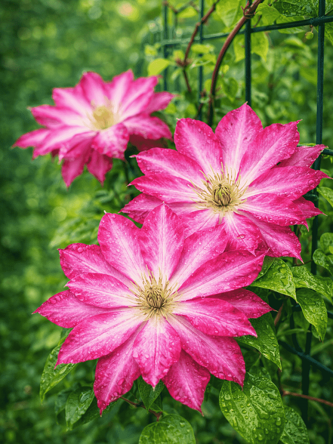 Саженцы клематиса гибридного Kaen предпочитают солнечные, защищенные от ветра места с водопроницаемой, суглинистой, слабощелочной или нейтральной, плодородной почвой. Высаживать растения необходимо рядом с опорами, чтобы длинные лианы (2-2,5 метра) имели за что цепляться. Цветет многолетник обильно в мае — июне. Второе цветение не такое сильное, наблюдается в августе — сентябре. Цветы махровые, диаметром 8-14 см, красно-розового окраса с розовой полоской посередине лепестка. Саженцы клематиса гибридного Kaen широко применяются для вертикального озеленения. Их высаживают вдоль забора, рядом с беседками, у парадного входа и террас.
