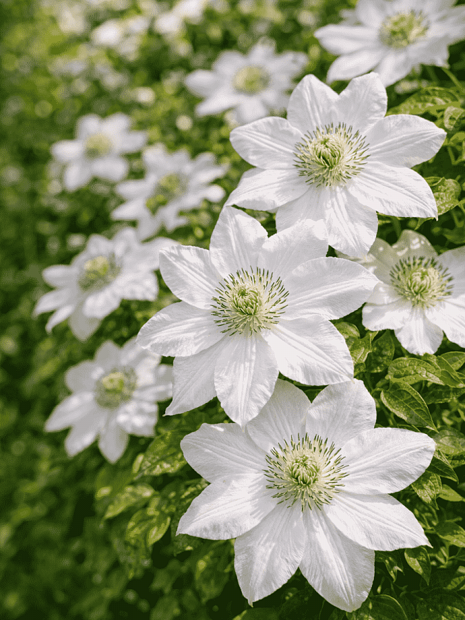 Саженцы клематиса гибридного Королева Ядвига (Krolowa Jadwiga) рекомендуется выращивать на хорошо освещенных и защищенных от ветра местах, с хорошо дренированной и плодородной почвой. Цветет в течение лета с мая по сентябрь. Цветки шелковистые, белые диметром 15-16 см. Клематис гибридный Королева Ядвига (Krolowa Jadwiga) цепляется за опоры листовыми черешками и способен лазать на высоту 200-250 см. Выращивают у беседок, арок, ограждений и других садовых опор. Подходит для выращивания в контейнере.