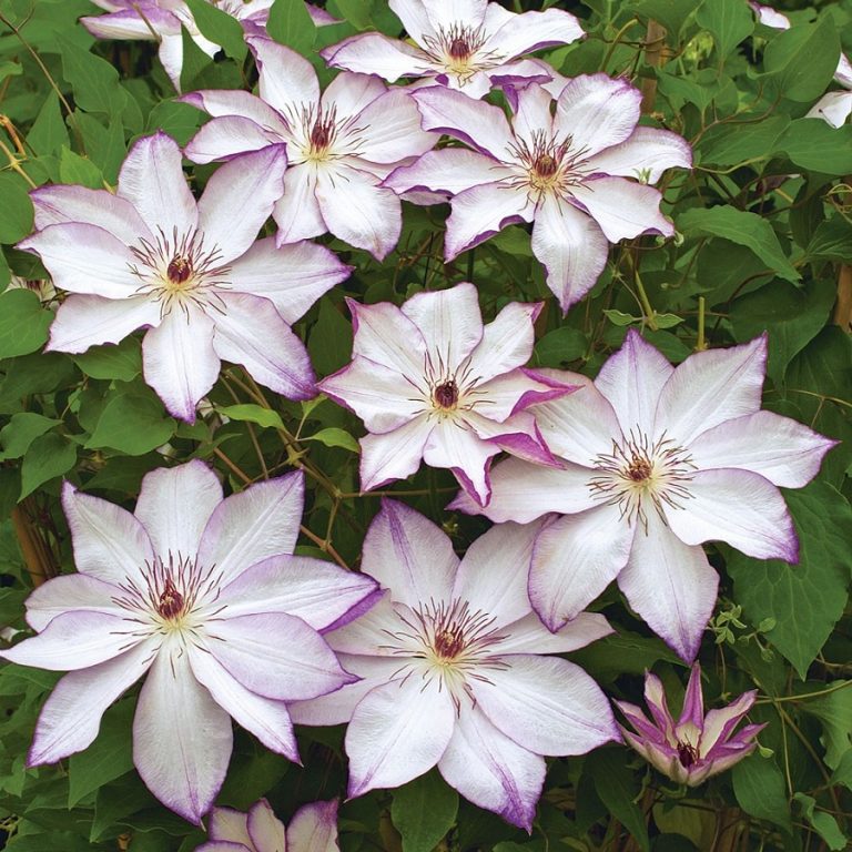Саженцам клематиса гибридного Омоширо (Omoshiro) подбирают солнечные места, защищенные от ветра и сквозняков, с плодородной почвой. При соответствующем уходе клематис гибридный Омоширо (Omoshiro) будет радовать обильным цветением в период с мая по июнь и с августа по конец сентября. Уход заключается в регулярных поливах, особенно в сухую погоду, ежегодной обрезке и своевременных подкормках. Цветки достигают в диаметре 16 см, белые с розово-пурпурными краями. Применяют при озеленении садовых участков, а так же балконов, лоджий и террас. Достигает в высоту 200-300 см. Рекомендуется выращивать рядом с беседками, ограждениями или естественными насаждениями, например карликовыми деревьями, хвойниками, кустарниками и полукустарниками.