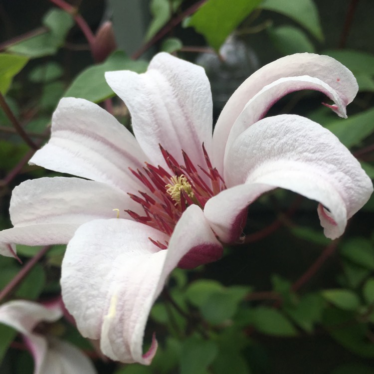 Саженцы клематиса гибридного Принцесса Кейт (Princess Kate) хорошо растут на солнечных участках и в полутени. В высоту растение достигает 300-400 см. С июля по сентябрь на лиане распускаются колокольчиковидные цветки. Цветки в диаметре достигают 4-6 см, снаружи лепестки пурпурного окраса, внутри белые с фиолетовым основанием. Осенью декоративная лиана украшена причудливыми соплодиями. Клематис гибридный Принцесса Кейт (Princess Kate) используют для украшения садовых построек, арок, решёток, заборов.