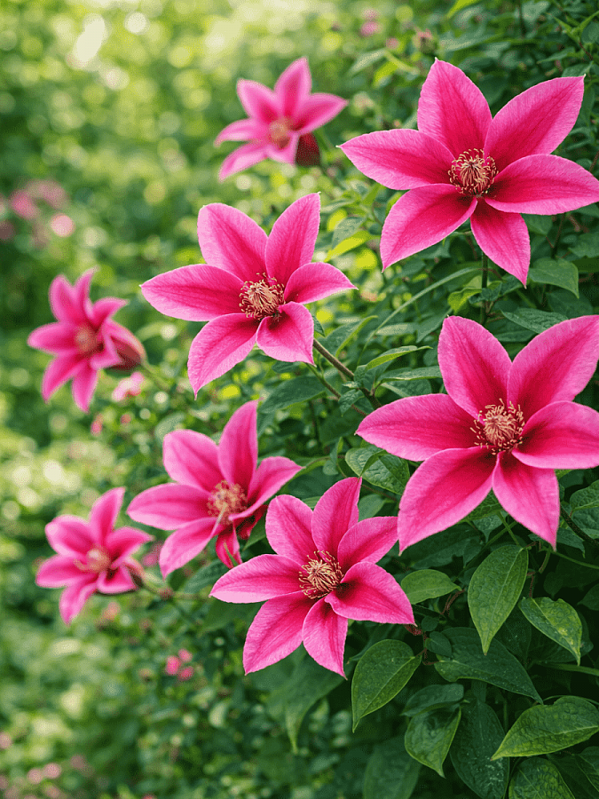 Клематис гибридный princess red - это великолепное растение с малиново-розовыми цветками, которые поражают своей красотой и изяществом. Высота этого растения может достигать 250-300 см, что делает его идеальным выбором для групповых или одиночных посадок в саду. Листья клематиса имеют интересную форму и яркий зеленый цвет, что придает растению особый шарм.