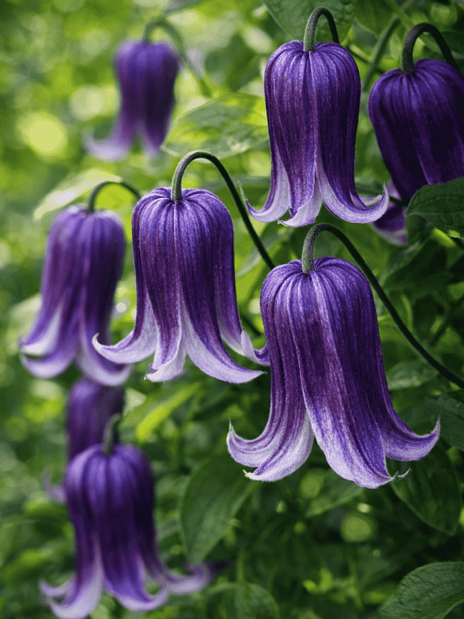 Саженцы клематиса гибридного Роогучи (Rooguchi) предпочитают солнечные места с плодородной почвой, хорошо сохраняющей влагу. Длина побегов составляет 150-200 см. Лианы только опираются на шпалеру, но не вьются вокруг нее, к опоре побеги рекомендуется подвязывать, в противном случае растение развивается как почвопокровное. Цветение обильное и беспрерывное, длится с июня по сентябрь. Цветки колокольчиковидные в диаметре достигают 4-5 см, окрашены в фиолетово-синий цвет, края лепестков светлые. Клематис гибридный Роогучи (Rooguchi) применяют в одиночных и групповых посадках, в сочетании с многолетними декоративными растениями, кустарниками. Подходит для выращивания в контейнерах.
