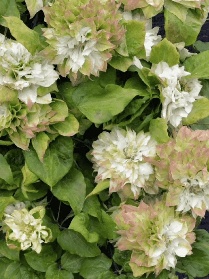 Для выращивания саженцев клематиса гибридного Сен-Но-Казе (Sen-no-kaze) наиболее подходящими считаются солнечные, защищенные места. Почва должна быть плодородной, рыхлой, супесчаной или суглинистой, однако глинистая, тяжелая почва не подойдет. Цветение обильное, начинается в мае и продолжается, до конца июня. Диаметр цветка колеблется в пределах 11-14 см. Цветки махровые имеют белых окрас со светло-зелеными и розовыми оттенками. Клематис гибридный Сен-Но-Казе (Sen-no-kaze) характеризуется умеренным ростом. Высота взрослого растения достигает 100-150 см. Применяют для благоустройства и озеленения балконов, террас, лоджий, в одиночных и групповых посадках.