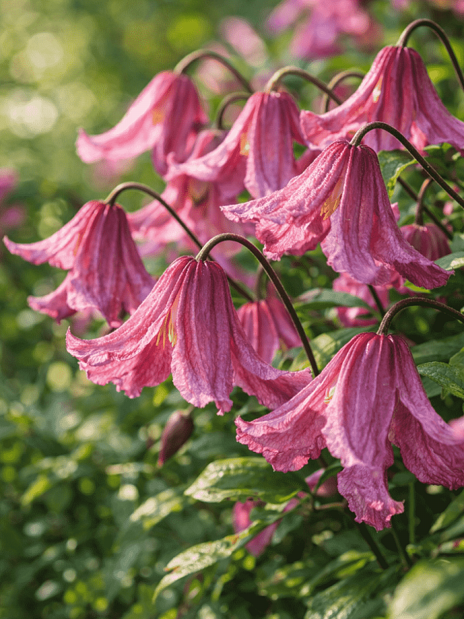 Клематис Heather Herschell - это великолепное растение с изящными розовыми цветками, которые привлекают внимание своей нежной окраской. Этот сорт клематиса отличается высотой до 200 см, что делает его идеальным выбором для групповых или одиночных посадок в саду. Листья клематиса Heather Herschell имеют уникальную форму и ярко-зеленый оттенок, что придает растению особый шарм.