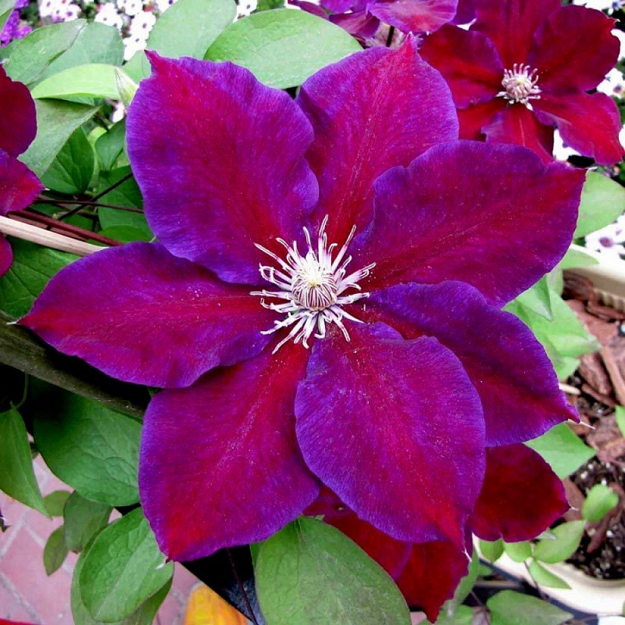Окраска цветка : темно-фиолетовый с темно-красной полосой