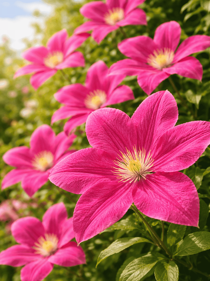Клематис kryspina - это великолепное растение с розово-бордовыми цветками, которое поразит ваш взгляд своей красотой. Сорт kryspina отличается высотой до 250-400 см, что позволяет создать великолепные групповые или одиночные посадки. Листья клематиса имеют уникальную форму и размер, что придает растению особый шарм.