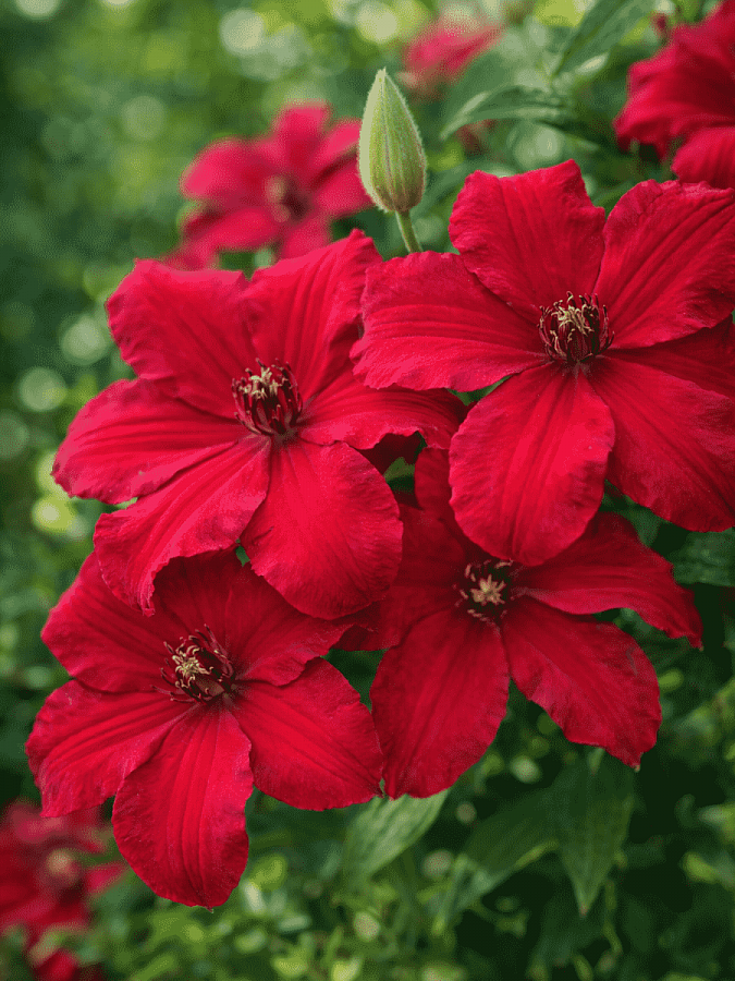 Клематис крупноцветковый "Кардинал Вишинский" - это великолепное растение, которое поразит вас своей красотой и изяществом. Его ярко-красные цветки с красно-коричневыми тычинками привлекут внимание всех садоводов. Этот кустарник может достигать высоты до 200-300 см, что делает его идеальным для создания живых изгородей или одиночной посадки в саду.