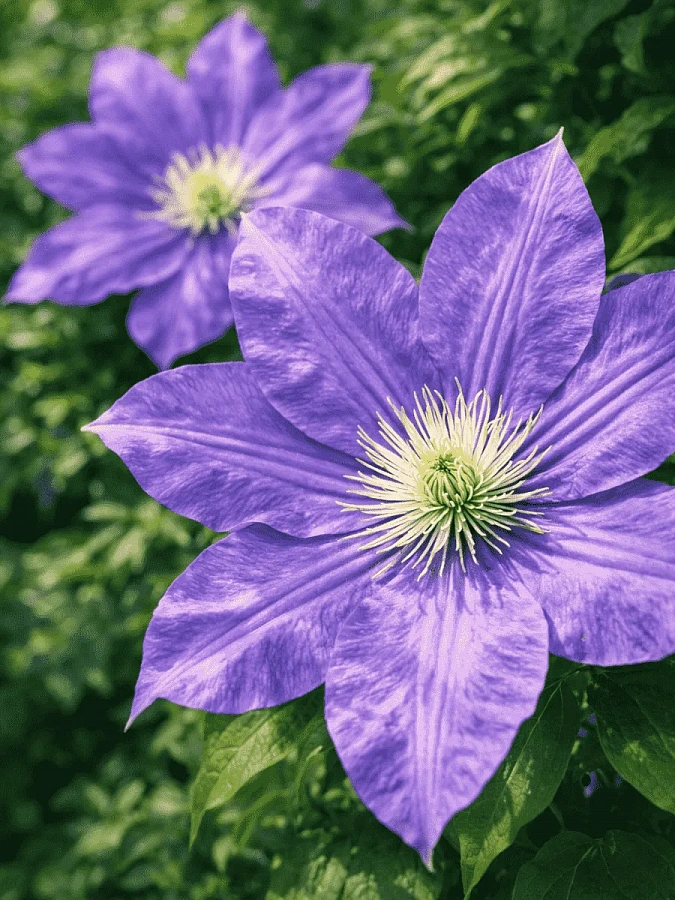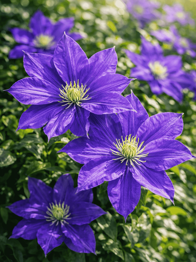 Этот сорт цветет в начале и середине сезона, радуя глаз голубыми, полумахровыми цветками. Клематис любит солнечные места, но также хорошо растет в полутени, что делает его универсальным для различных условий выращивания. Растение требует дренированных богатых почв и регулярного полива, особенно в период цветения.