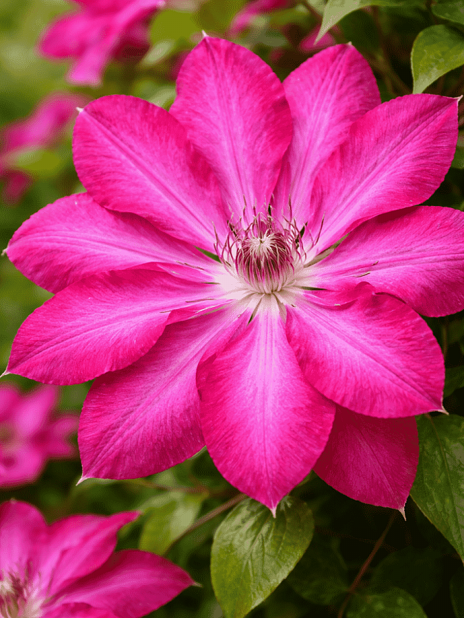 Клематис крупноцветковый Red Passion - это великолепное растение с красивыми крупными цветками, которые радуют глаз своей яркой красотой. Этот сорт клематиса отличается высотой до 150-200 см и цветением в мае-июне. Цветки имеют размер 8-10 см и окрашены в насыщенный красный цвет, что делает их по-настоящему привлекательными. Листва растения зеленая как весной, так и летом, создавая красивый контраст с яркими цветами.