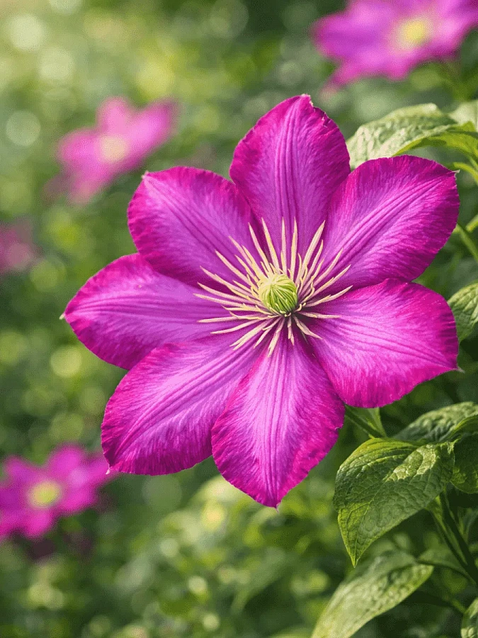 Этот сорт цветет в течение нескольких месяцев в году, радуя глаз своими ярко-фиолетовыми цветками. Для выращивания клематиса важно выбирать солнечные места, где он будет чувствовать себя комфортно. Растение требует умеренного полива и опрыскивания, а также регулярного удобрения для поддержания здоровья и красоты.