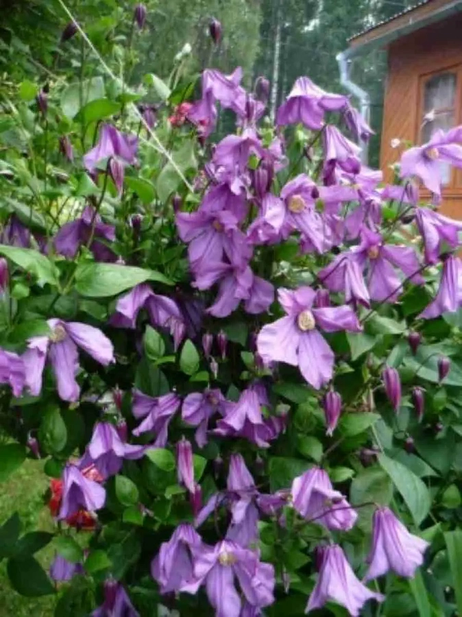 Клематис "Память сердца" - это великолепное растение с нежно-лиловыми цветками, которые привлекают взгляд своей красотой и изяществом. Высота этого клематиса может достигать до 190 см, что делает его идеальным выбором для создания гармоничных групповых посадок или одиночных композиций в саду. Листья клематиса имеют элегантную форму и придают растению особый шарм.