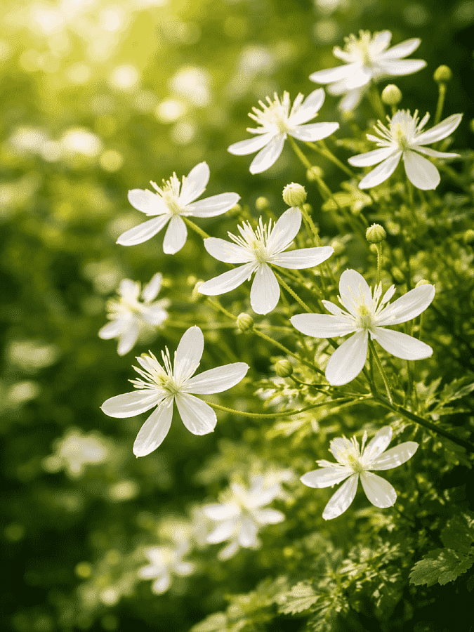 Клематис трехцветковый Максимовича - это изысканное растение с белыми цветками, которое поражает своей красотой и изяществом. Его стебли достигают высоты до 400 см, создавая великолепный вертикальный акцент в саду. Листья клематиса имеют интересную форму и ярко-зеленый оттенок, что делает его еще более привлекательным.