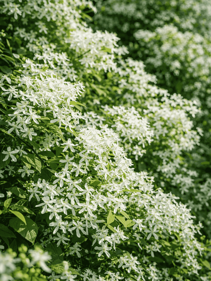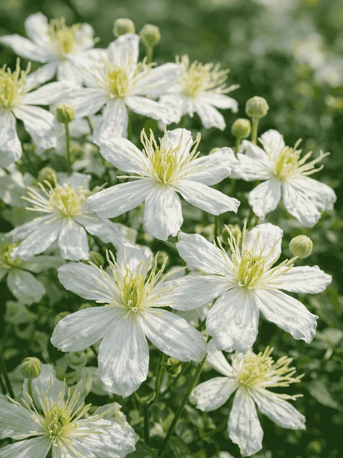 Клематис виноградолистный - это изысканное растение с кремово-белыми цветками, которое поражает своей красотой и изяществом. Его лианы могут достигать высоты до 500-600 см, создавая великолепные композиции в саду. Листья весной зеленеют, а осенью приобретают желтый оттенок, добавляя разнообразия в ландшафт.