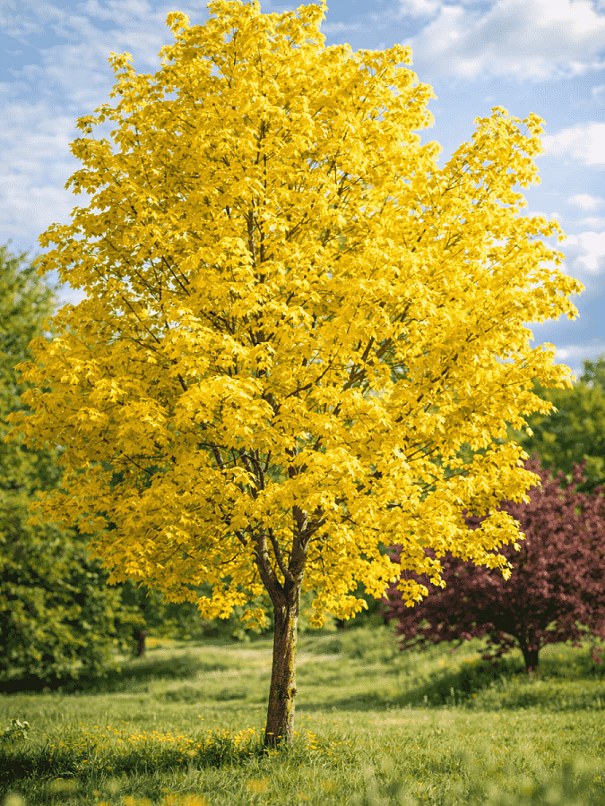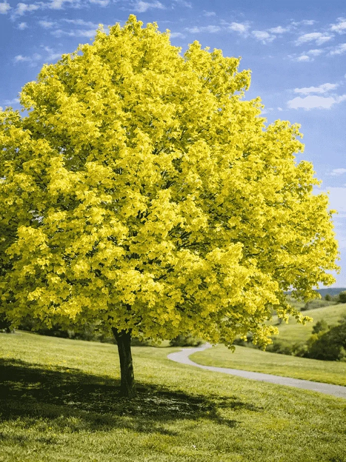 Клен остролистный Принстон Голд - это великолепное растение, которое поразит вас своей красотой и изяществом. Его ствол устойчивый и прочный, а размеры достигают внушительных 1200 см в высоту и 1000 см в диаметре. Листья клена имеют форму, напоминающую остролист, и меняют свой цвет в зависимости от времени года: золотисто-желтые весной, зеленовато-желтые летом, и ярко-желто-оранжевые осенью.