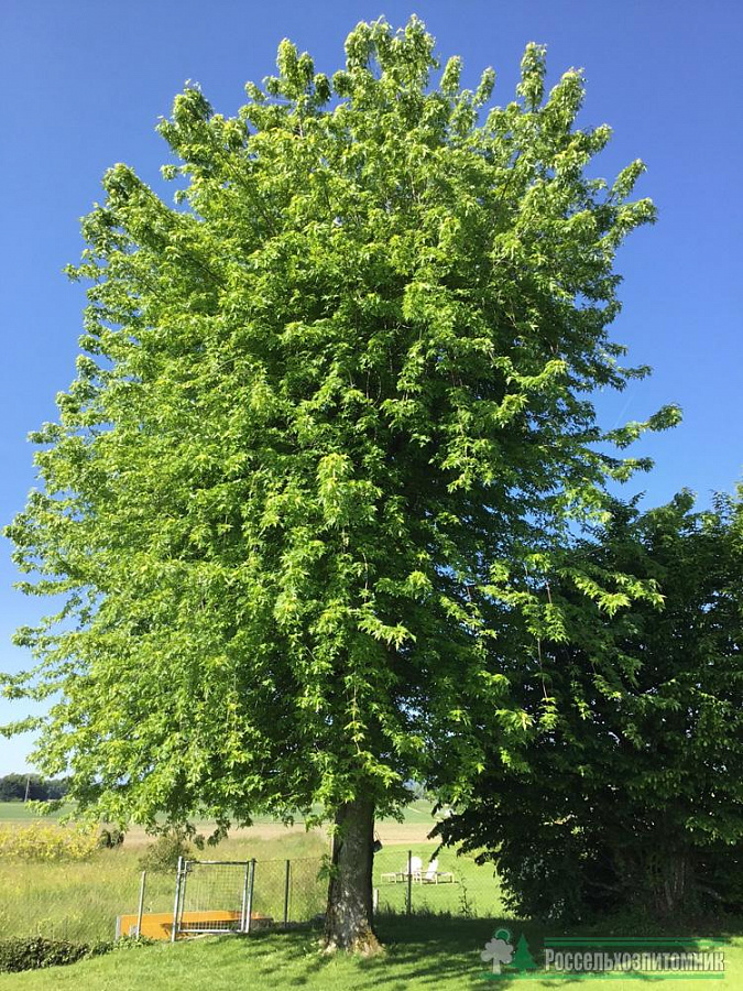 Саженцы клёна серебристого (Acer saccharinum) хорошо приживаются, гарантировано — если брать их с большим комом земли в мешковине. Родина — северная Америка. Верхняя часть листа светло-зелёная, нижняя — серебристо-белая, с сизым оттенком. Достигает в высоту до 30 метров и выше, быстрый рост, большая, раскидистая крона, срок жизни — до 130 лет и больше. Хорошая морозоустойчивость — до минус 40 °C. Светолюбив, хорошо переносит паводковые затопления. Возможна покупка и посадка в виде крупномера.