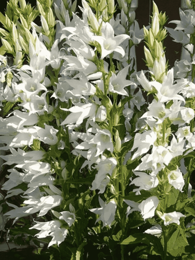 Колокольчик пирамидальный alba - это изысканное растение, которое поразит вас своей красотой и изяществом. Его стебель прямой и прочный, достигает высоты до 160 см, создавая великолепную пирамидальную форму. Листья колокольчика алба имеют ярко-зеленый цвет и овальную форму, что придает растению особый шарм.