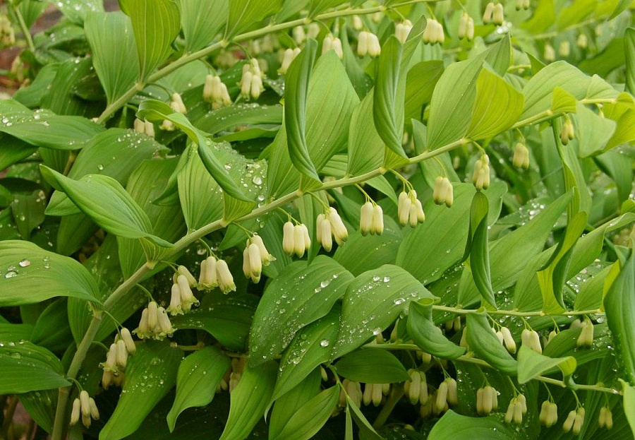 Рассада купены многоцветковой используется для создания цветников и клумб. Также ее часто можно встретить на участках в природном стиле. Растение абсолютно неприхотливо, за что его любят все садоводы. Семена купены многоцветковой высевают на любые места. Но лучше всего если это будет тень или полутень. К почве требований нет никаких. Единственное, растение не переносит застоя влаги. Рассада купены многоцветковой хорошо разрастается под деревьями и на грядках. Внешний вид напоминает ландыши. Форма листьев широкая. Цветочки походи на капельки. Их цвет чаще всего белый.