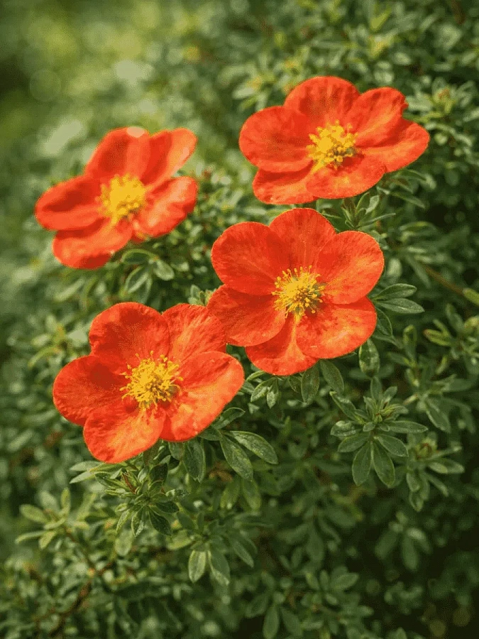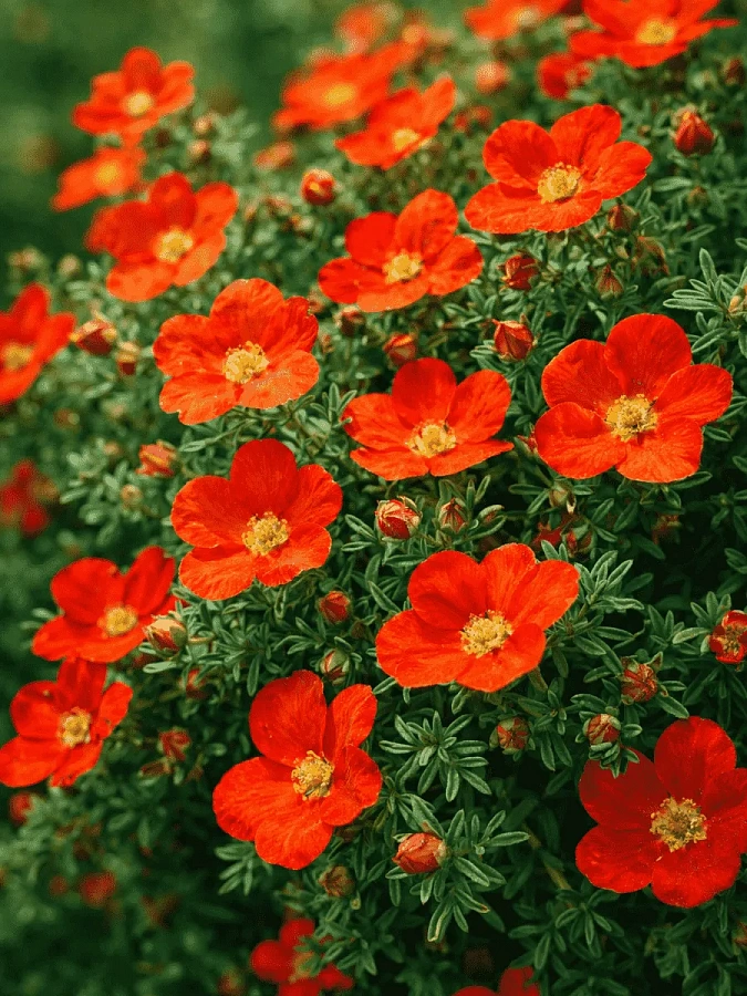 Саженцы лапчатки кустарниковой Marian Red Robin порадуют обильным и продолжительным цветением: с июня до октября зеленая поверхность плотных кустарников будет украшена яркими оранжево-красными цветами. Высота взрослого растения достигает 60 сантиметров. Этот сорт используется для создания одиночных и групповых посадок, подбивки высоких кустарников, а также оформления рокариев и альпийских горок. Саженцы лапчатки кустарниковой Marian Red Robin нуждаются в хорошем освещении. Они плохо переносят засуху, поэтому нуждаются в регулярном поливе. На зиму рекомендуется мульчировать поверхность почвы.