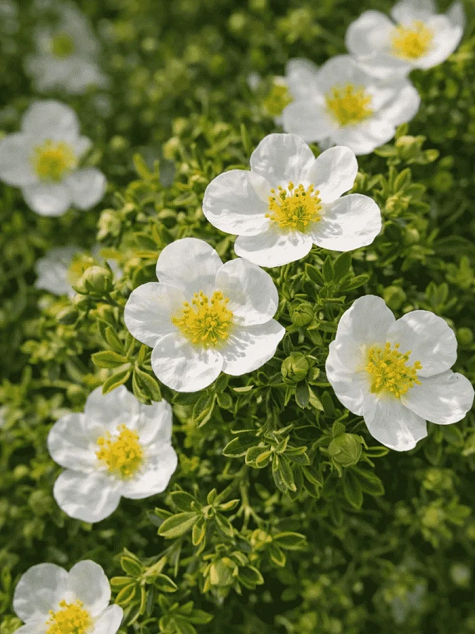 Лапчатка кустарниковая Tilford Cream - это изысканное растение, которое поразит вас своей красотой и изяществом. Ее ствол прочный и устойчивый, а размеры достигают высоты до 50-60 см и диаметра до 100 см. Листья этого растения имеют интересную форму и придают ему особый шарм.