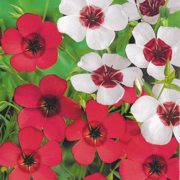 Семена льна крупноцветкового "Очарование" высевают сразу в открытый грунт в конце марта — апреле на солнечный участок с хорошо дренированной почвой. Это эффектный кустистый однолетник высотой 45-50 см, шириной 15-20 см. Растение с узкими светло-зелеными листьями и довольно крупными пятилепестковыми цветками контрастной белой и красной окраски. Цветет сорт с июня до сентября. Лен крупноцветковый "Очарование" идеально вписывается в мавританский газон, отлично гармонирует со многими засухоустойчивыми и солнцелюбивыми культурами.