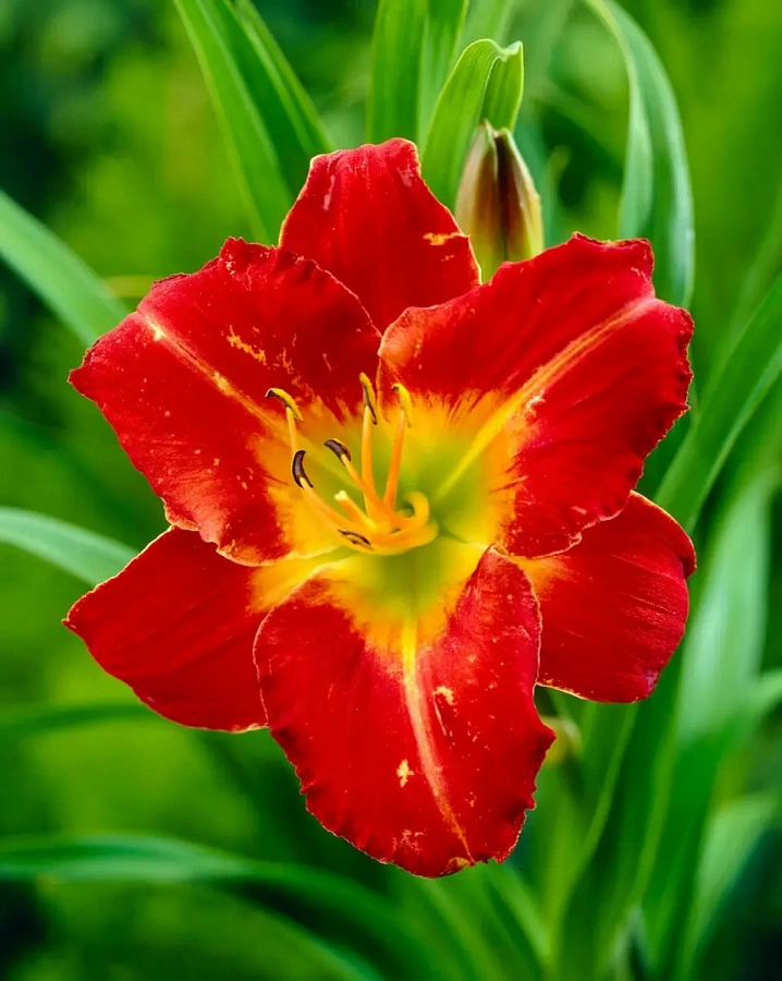 Окраска цветка : алый, с зелёно-жёлтым горлом