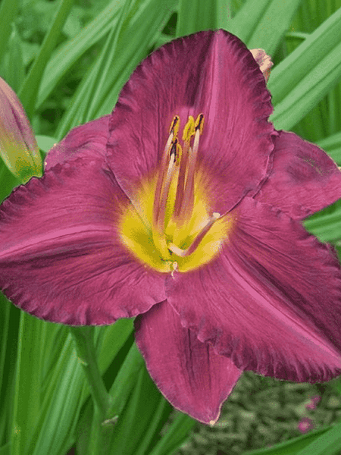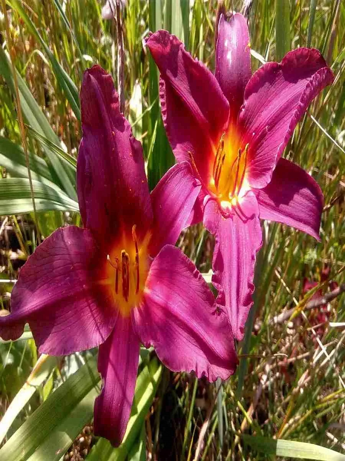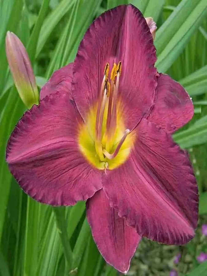 - небольшие требования в уходе. Цветки лилейника Джордан отличаются темно-бордовым оттенком слегка гофрированных по краю лепестков. Лимонно-желтое горло отделено от основного цвета красноватым глазком. После цветения можно собрать семена, которые хранятся довольно долго и могут проращиваться.