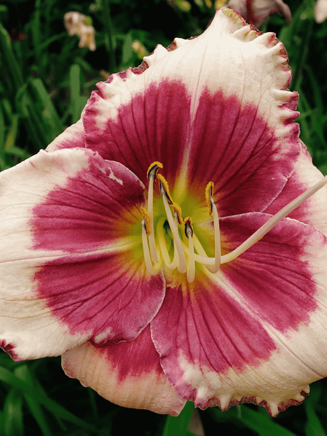 Рассада лилейника Хеллоу Скример (Hello Screamer) вырастает до 70 см в высоту и при цветении на ней появляются немахровые большие 12,5 см в диаметре цветы. Они нежно-розового цвета с пурпурными краями и таким же пятном над зеленой сердцевиной. Во всем саду вряд ли найдется другой такой цветок, который будет непрерывно цвести довольно долгий период. Когда после посадки рассады проходит 3 – 5 лет, то за сезон на нем могут попеременно появляться до 20 – 30 цветоносов, каждый из которых несет от 10 до 20 цветков. Высаживать этот сорт лучше на места с умеренным увлажнением и достаточным поступлением солнечного света.