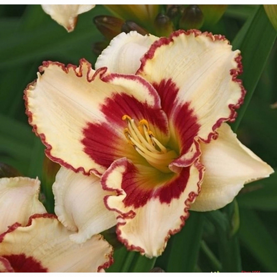 Окраска цветка : кремовый с бордово-пурпурным глазком