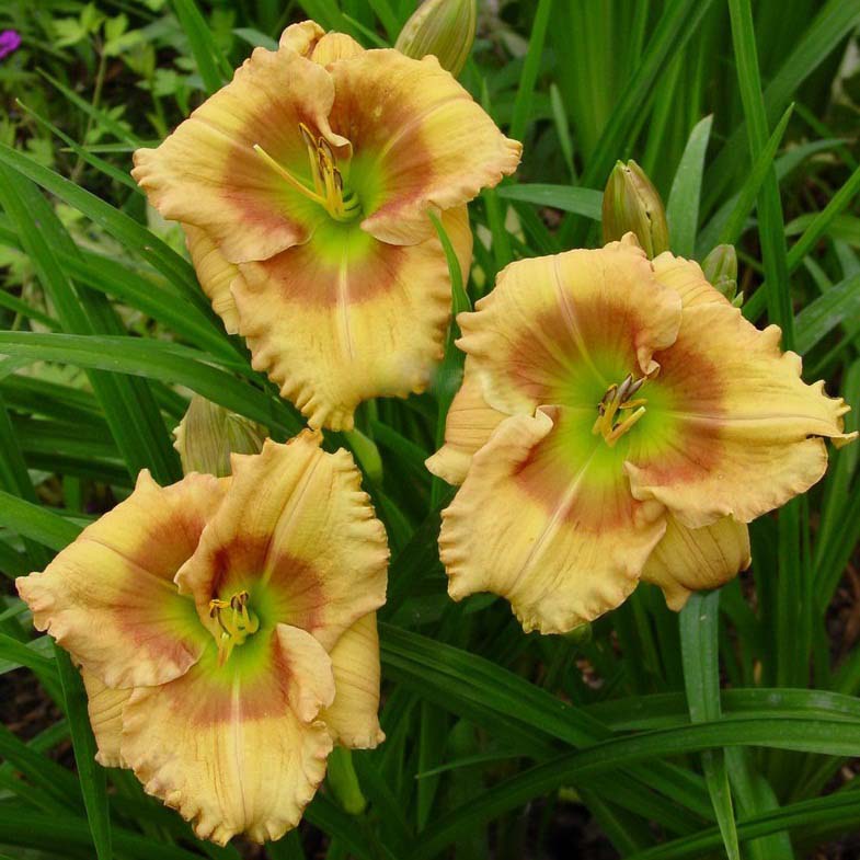 Окраска цветка : Медово-жёлтая с винным пятном и зелёным горлом