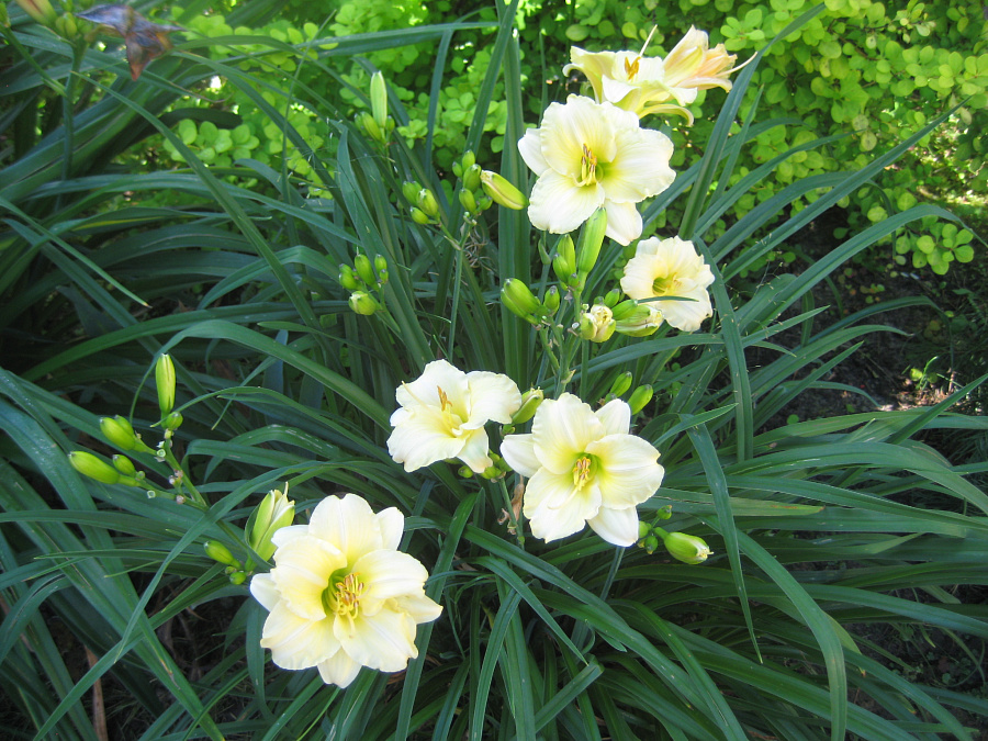 Рассада лилейника Кул Ит (Cool It) самый неприхотливый из всех подобных светлых сортов. Его цветы широкие до 15 см в диаметре, гофрированные с желтой сердцевиной. Цветение по срокам среднее – начинается в конце июля, зато оно обильное и долгое. Ярче всего окрас цветов будет смотреться при высадке в полузатененном месте. Зимует он без дополнительного укрытия. Если говорить об использовании сорта Кул Ит в оформлении ландшафтов, то оказывается что количество идей просто неисчерпаемо. Он отлично украсит групповые посадки, миксбордеры. Можно встретить одиночно высаженные цветы на газонах или вдоль входа и т.п.